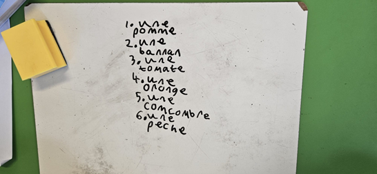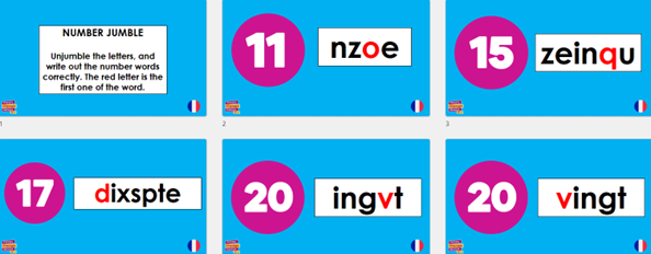 This sense of success is also apparent when you give the command to hold up their whiteboards. This is a great opportunity to use the target language ‘Un deux trois montrez-moi!’ and gives you the chance to do some real assessment for learning. Who has got it? Who hasn’t? Are there any misconceptions? Any gaps you may need to re-visit? What are the general trends? Instead of relying on hands up and assuming that everyone has understood based on one individual’s response, you can see, at a glance, a range of responses (hence the need for oversized handwriting) and at the same time you can select a child who you know has got a correct answer to read theirs out aloud. This then builds their confidence further to answer next time!