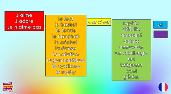 The Primary Languages Network schemes of work for French, Spanish and German have inclusion and adaptive teaching strategies built in, from recall warm-ups, or Go Fetch activities, to opportunities to practise writing at single word level right through to writing at extended sentence level. PLN’s unique Rainbow Writing scaffold can not only boost confidence but also success in writing as it supports the pupil to construct a grammatically accurate target language sentence independently.